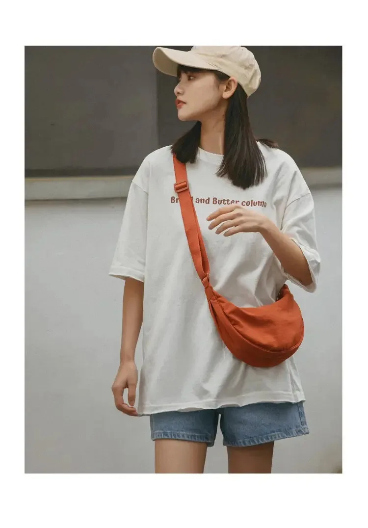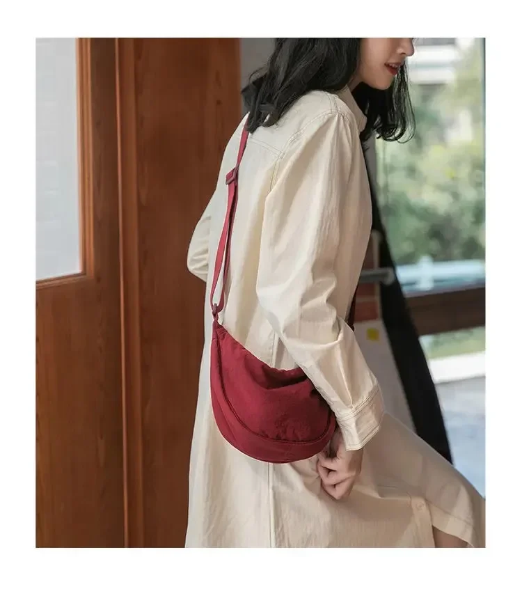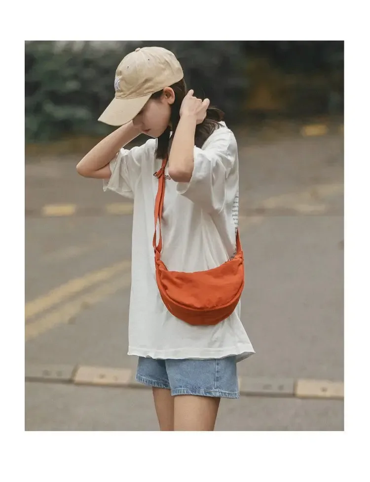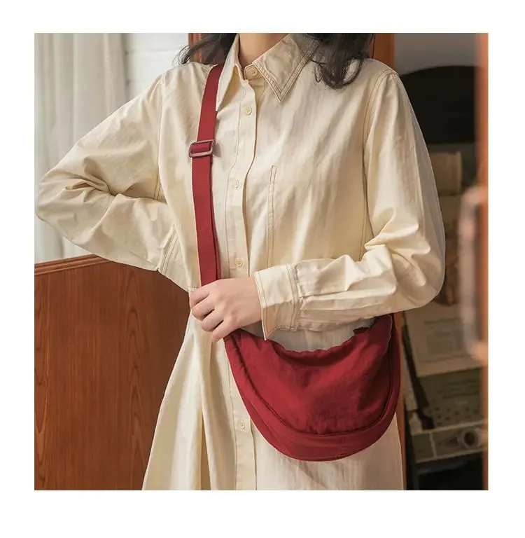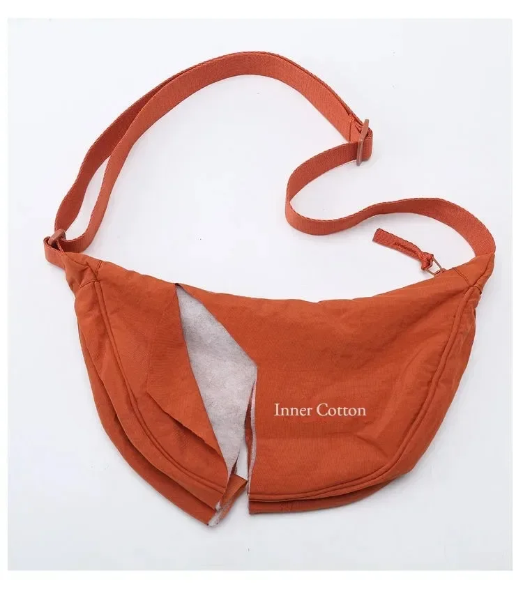 Men and Women Solid Color Chest Bag for Large Capacity Travel Crossbody Female Half Moon Bag Daily Cotton Filled Shoulder Bag